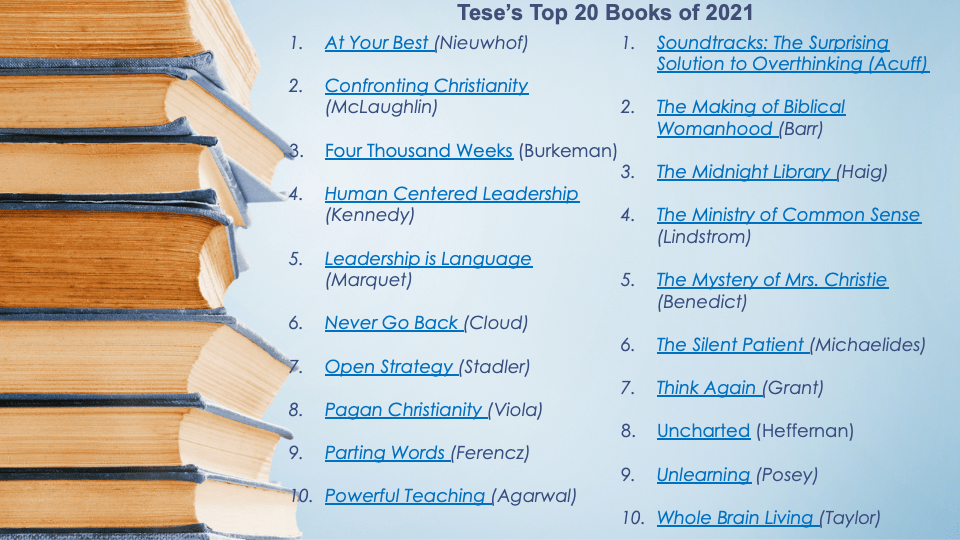 Here are my favorite books of 2021 (in alphabetical order – hyperlinks to books provided in paragraph below image). Would love to hear from you…..What were your favorites? What are you reading now?
